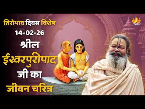 सद्गुरुदेव श्री ईश्वरपुरी पाद के पावन जीवन चरित्र का वर्णन करते हैं, जो पूर्वजन्म अर्जित दैवी संस्कारों के साथ जन्म लेकर बाल्यकाल में ही समस्त शास्त्रों में पारंगत हो गए। श्री माधवेंद्रपुरी से दीक्षा प्राप्त कर तीव्र वैराग्य धारण किया और खीरचोरा गोपीनाथ में गुरु सेवा द्वारा उनका आशीर्वाद प्राप्त किया। नवद्वीप में श्री अद्वैत आचार्य प्रभु के सत्संग में गुरुभाई के रूप में मिलन हुआ और किशोर निमाई पंडित के दिव्य स्वरूप का अनुभव किया। गया तीर्थ में विष्णुपाद पर महाप्रभु को दशाक्षर मंत्र प्रदान कर दीक्षा दी, जिसके बाद महाप्रभु में तीव्र प्रेमोन्मत्त दशा का प्रकाश हुआ। महाप्रभु ने श्रीवास पंडित के गृह में सबको अपना सच्चिदानंद स्वरूप दिखाया और सन्यास लेकर जगन्नाथपुरी चले गए, जबकि ईश्वरपुरी पाद गुरु चिंतन करते हुए नित्य लीला में प्रविष्ट हो गए।