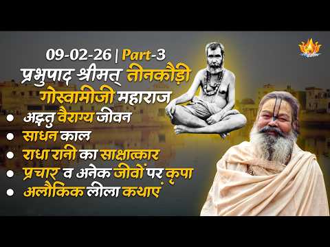 गुरुदेव की साधना यात्रा: वर्तमान का मूल्य, सन्यास का सत्य स्वरूप, एवं राधारानी के अनावृत दर्शन, वर्तमान समय की महत्ता, बाबाजी बनने का वास्तविक उद्देश्य एवं खूंटा दृष्टांत, महाप्रभु द्वारा सन्यास की समालोचना, नित्य सन्यासी की परिभाषा, गुरुदेव का स्वयं सन्यास ग्रहण, तीव्र साधना काल, अदृश्य शक्तियों का सहयोग, श्री वल्लभाचार्य एवं विट्ठलनाथ जी के दर्शन, राधारानी का अनावृत दर्शन एवं प्रचार आदेश, तथा तीन प्रकार की कथा का विवेचन